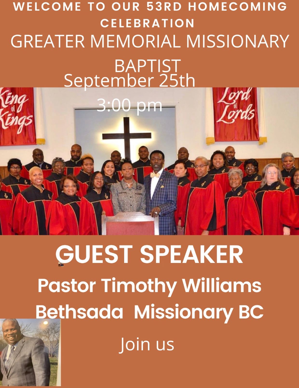 One more of the longstanding fellowship churches during our Homecoming Celebrations Pastor: Timothy Williams. and the Bethsada Missionary B.C. Family